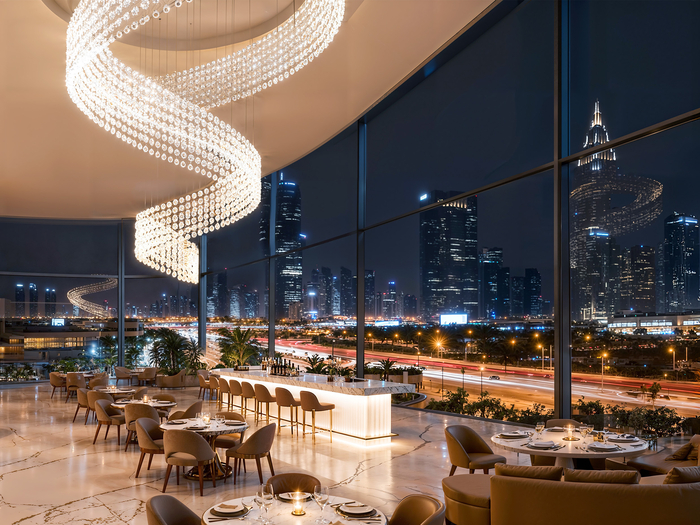 Rising on Sheikh Zayed Road between the dynamic districts of Al Barsha and Business Bay, SHAHRUKHZ by Danube is an upcoming Class A commercial skyscraper set to redefine the future of business architecture in Dubai. Scheduled for completion in Q2 2029, this landmark 55-storey tower combines futuristic aesthetics, advanced engineering and a bold creative collaboration with famous Indian actor and producer Shah Rukh Khan, giving the project a distinctive character and global appeal. Designed for modern companies seeking visibility, comfort and flexible workspace formats, the development offers a rare combination of scale, lifestyle amenities and strategic connectivity.