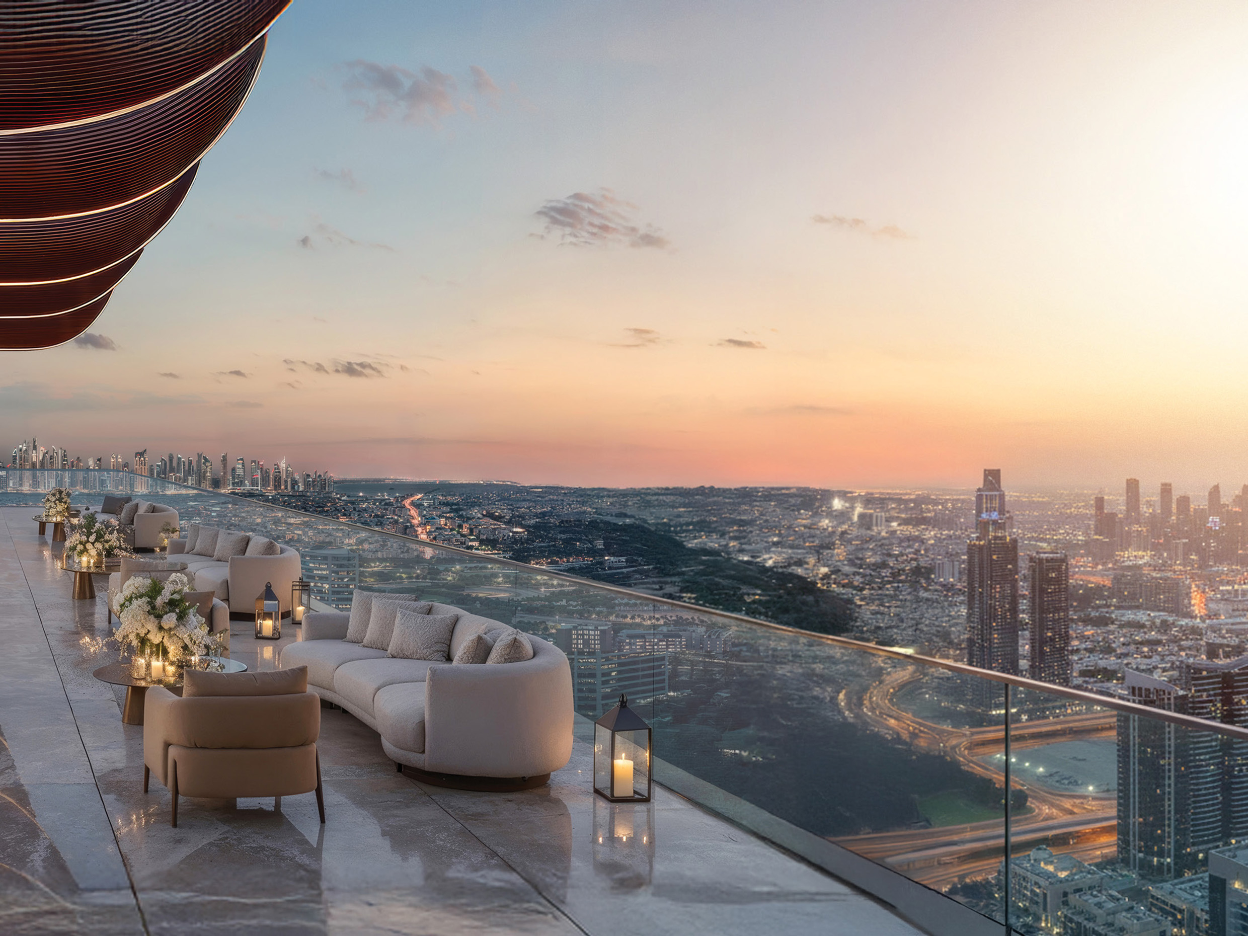 SHAHRUKHZ by Danube stands out with its expressive, futuristic silhouette, extensive glazing and open-air green elements woven into the vertical structure. Every detail is crafted to maximize light, comfort and breathtaking city views.